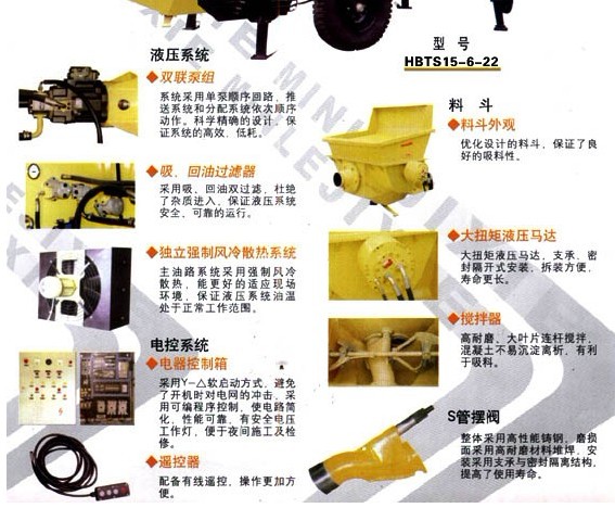 電機(jī) 主油泵(現(xiàn)在一般用韓國川崎的進(jìn)口主油泵) 電磁閥(國內(nèi)用華德的多) 料缸 主油缸(國內(nèi)品牌好的是協(xié)力油缸) 潤滑泵 (6路潤滑泵)風(fēng)冷(冷卻液壓油的,也有廠家用水冷,水冷工地需要接水,就是這個(gè)麻煩一些)電控柜 (PLC歐姆龍的比較好點(diǎn))