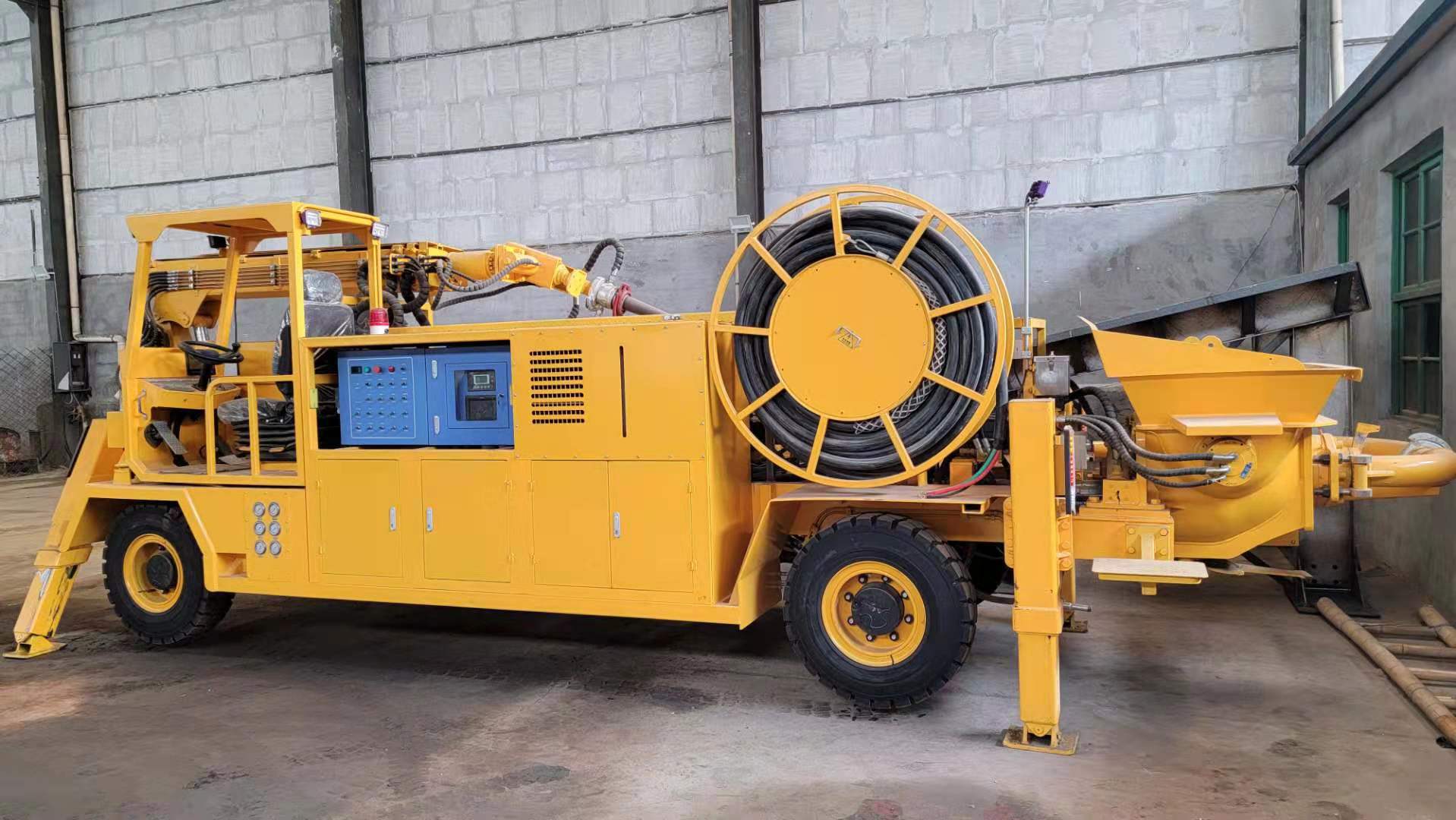 3) 速凝劑添加系統(tǒng)采用軟管泵,流量大、壽命長(zhǎng)、可靠性好??筛鶕?jù)需要調(diào)節(jié)比例,外加劑的摻量和混凝土泵送輸量均可通過(guò)工控屏或遙控器實(shí)時(shí)監(jiān)控和調(diào)節(jié)。