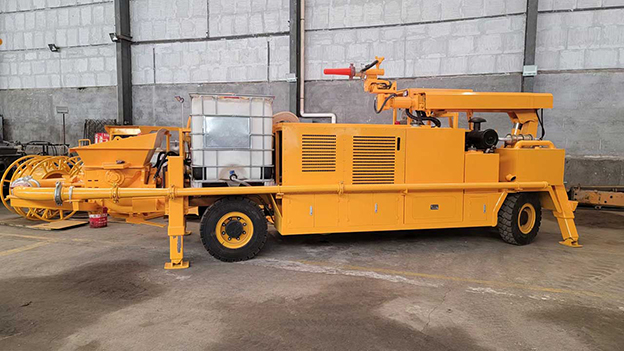 3.車載式濕噴臺(tái)車配有自動(dòng)潤(rùn)滑系統(tǒng),對(duì)主要密封部位采用自動(dòng)潤(rùn)滑,油脂加注量、加注時(shí)間自動(dòng)控制,大大延長(zhǎng)易損件壽命。速凝劑添加連續(xù)可調(diào),可根據(jù)噴漿量調(diào)節(jié)。