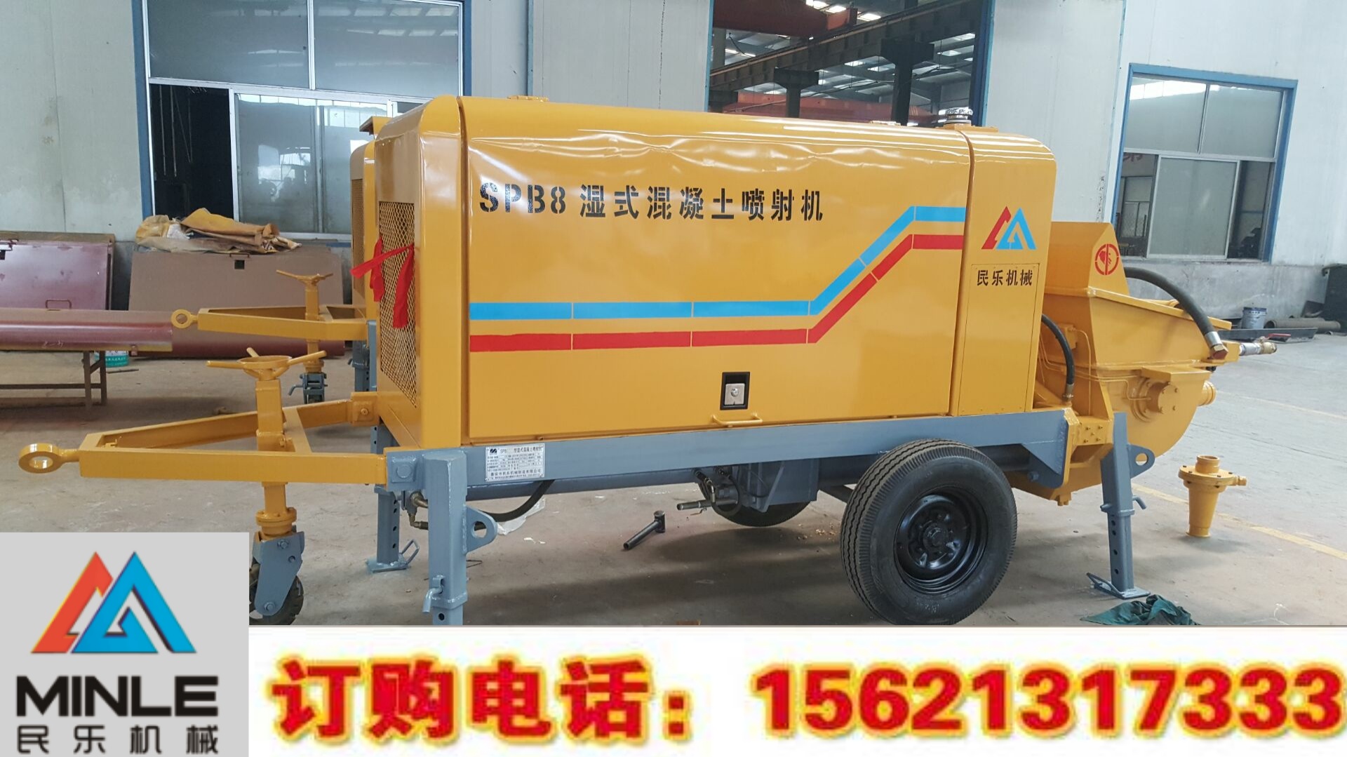 濕噴機(jī)是將攪拌好的混凝土通過輸送泵送至噴嘴,且在輸送泵的出口處加以壓縮空氣,讓物料和空氣在管路中得以充分rong合,使得后的物料更加均勻。且在噴嘴處加速凝劑,讓物料能夠快速凝固,回彈率。并且材料的配合易于控制,工作效率較干噴高。